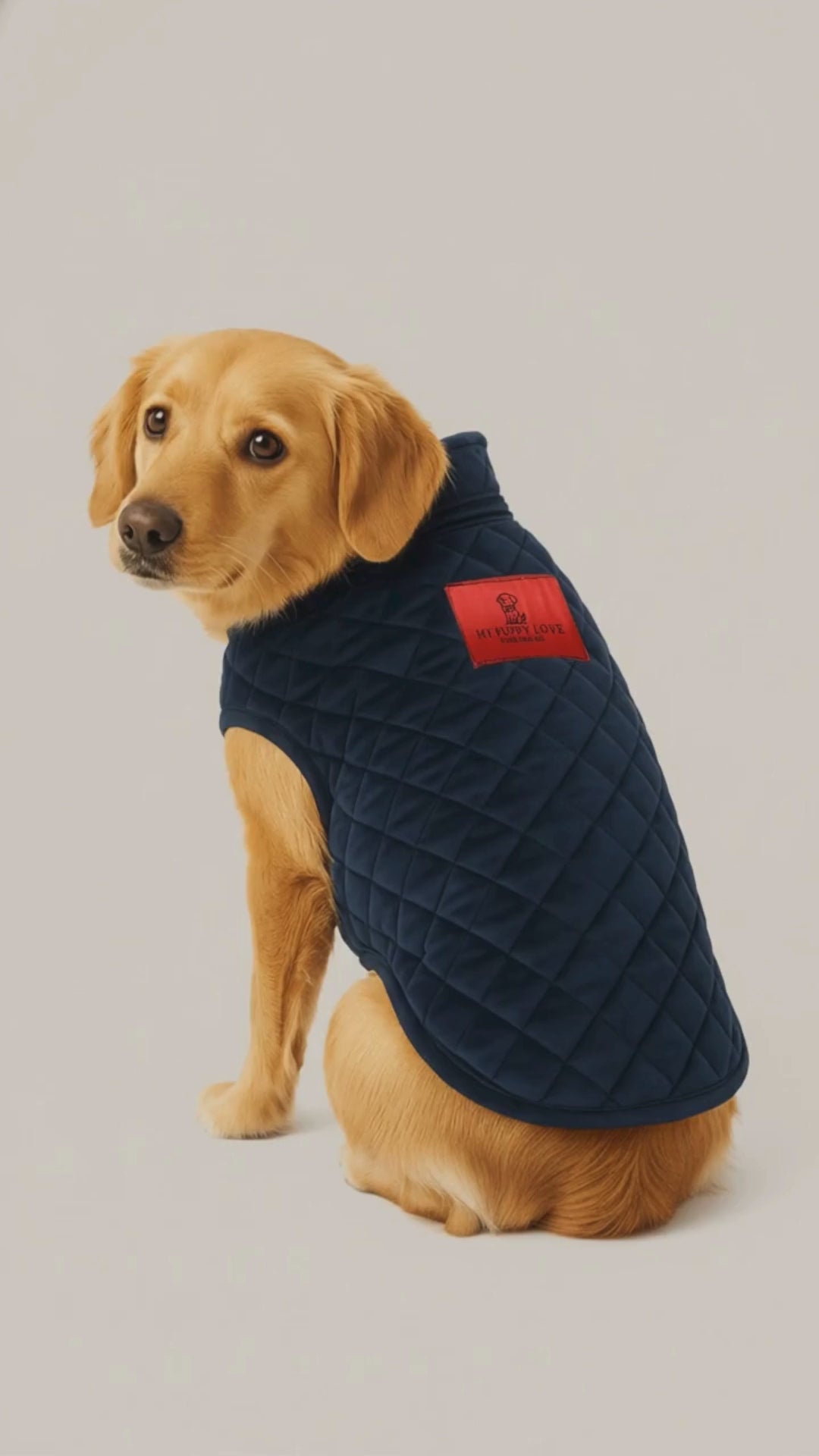 For pups who love to lounge in quiet luxury. The Blue Velvet Heritage Jacket is made from ultra-soft quilted velvet — plush to the touch yet perfectly practical for breezy walks. Its classic navy hue and minimalist silhouette make it an elegant essential for every well-dressed dog. Finished with a signature red My Puppy Love patch — because style is in the details.